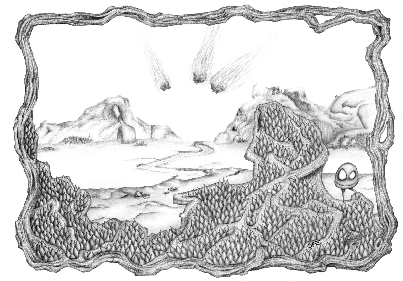 “Utopia I”, blyertsteckning storlek A4.