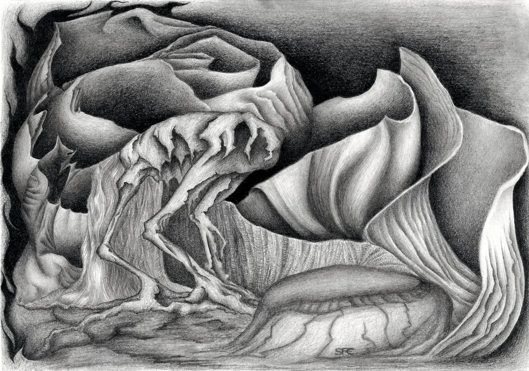 “Skärfva Skogsrå”, blyertsteckning i storlek A4.